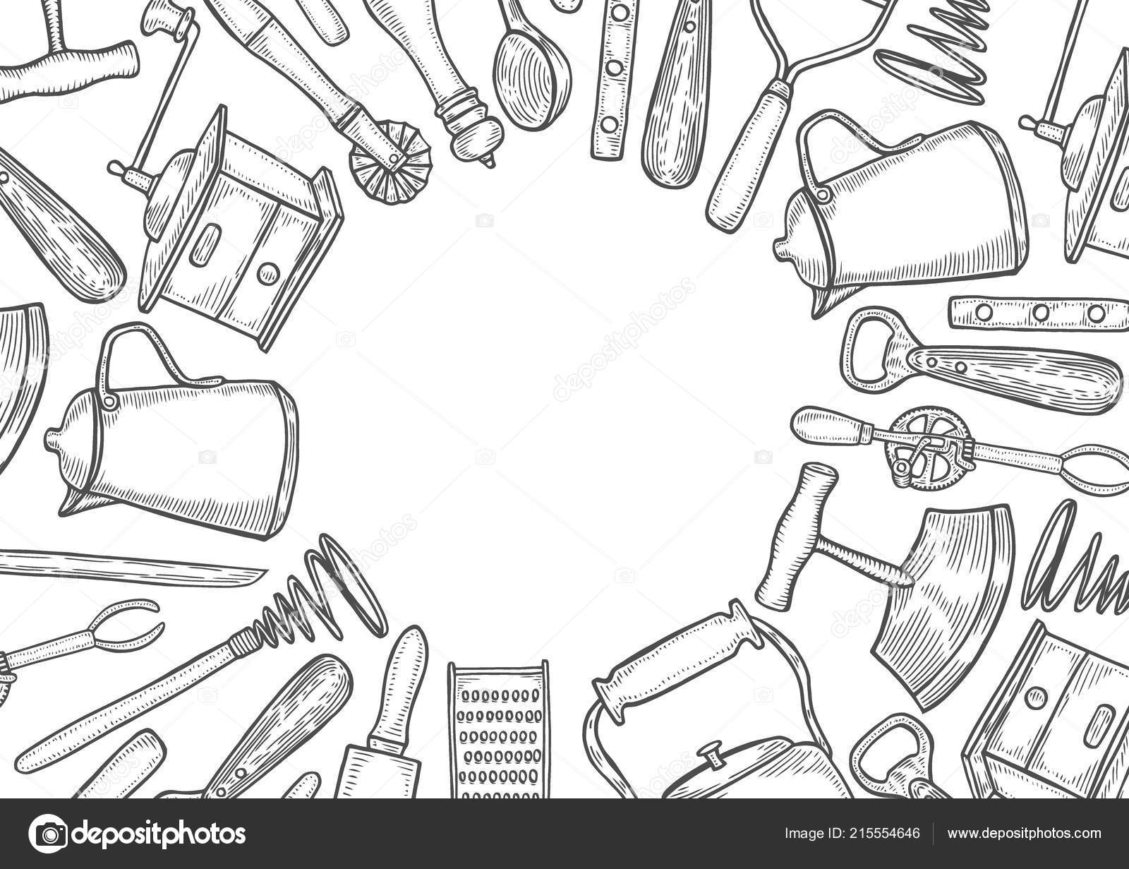 Background. Be sure to subscribe to my channel for lots more drawing. Hand drawn illustration with kitchen utensils actual vector drawing.